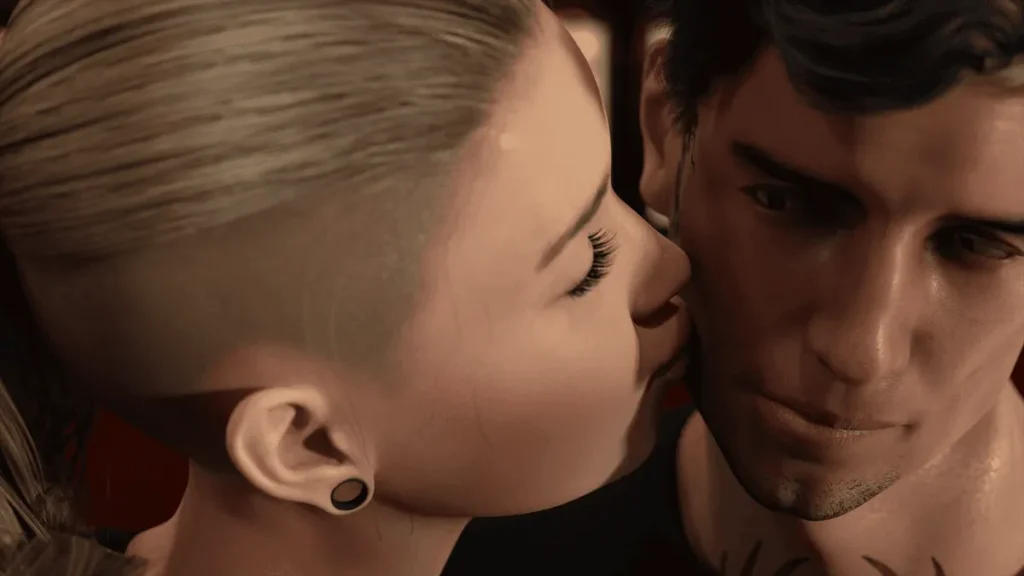 Now, let’s talk about the wow factor. The Hellcat Lounge is a 3D visual novel, and it uses that dimension to its full, breathtaking advantage. This isn’t a static slideshow of 2D drawings. Environments are fully realized spaces you can almost feel. The dim, neon-soaked interior of the lounge, the intimate details of a character’s apartment, the hazy LA skyline—all are rendered with a striking attention to detail that fully sells the rock club setting. You can see the texture of leather jackets, the glint off a guitar string, and the subtle expressions that flash across a character’s face.